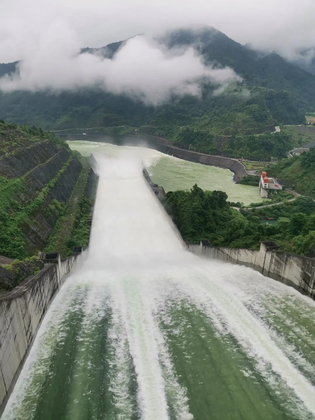 目前,三板溪水库泄洪平稳,下游河道行洪正常。