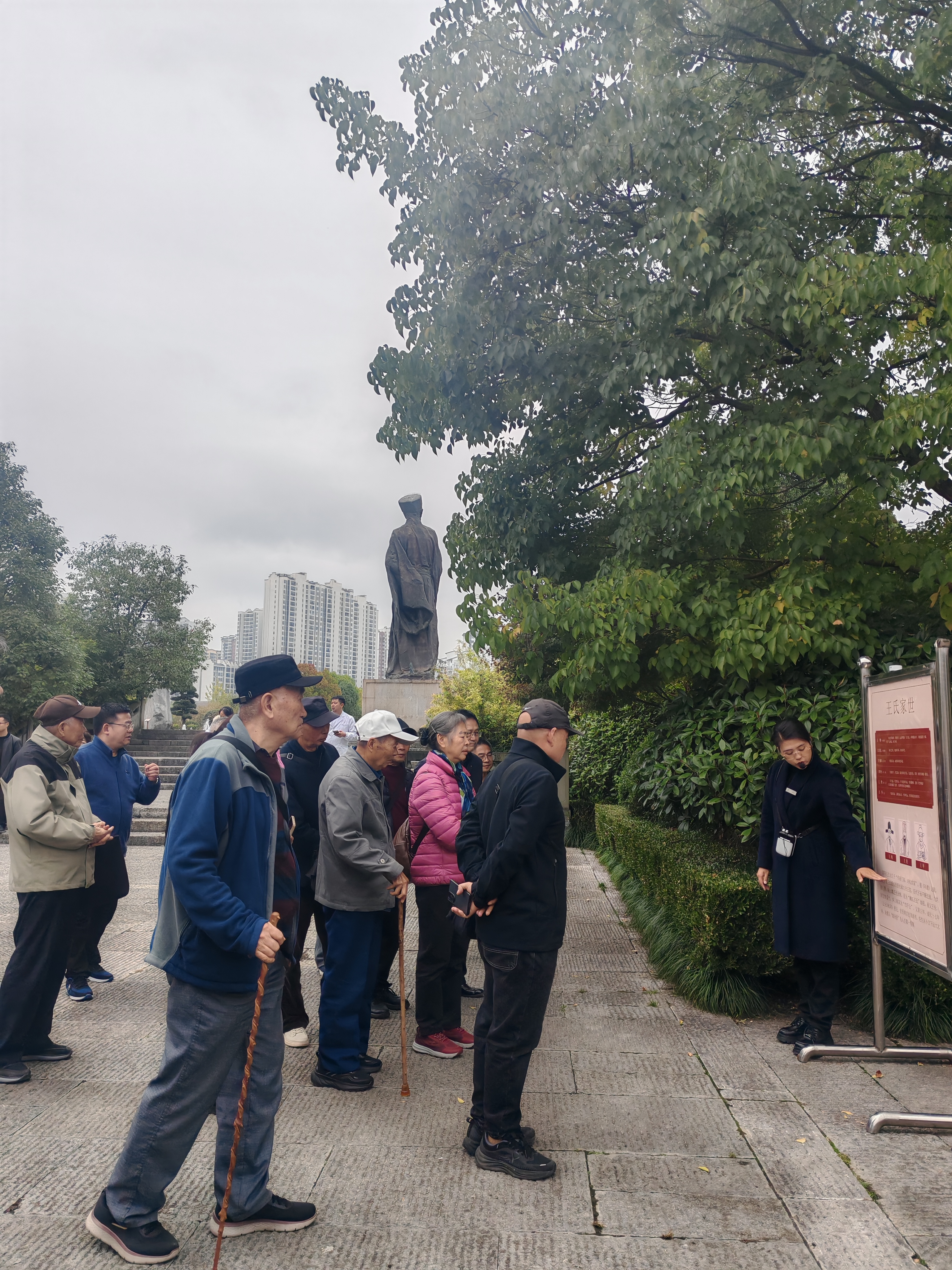 在修文县阳明文化园,以“知—悟—行”为主线,老同志们先后参观了王阳明铜像、阳明洞、王文成公祠等文化景点,学习《王阳明生平》《阳明思想》,了解心学的传承与影响,理解阳明文化核心思想理念的现实意义。