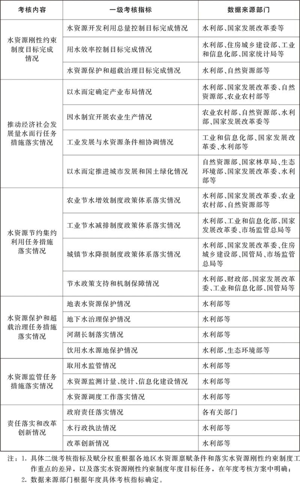 落实水资源刚性约束制度考核内容与指标