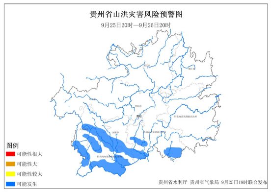 5278论坛 、贵州省气象局2025年9月25日18时联合发布山洪灾害风险预警: